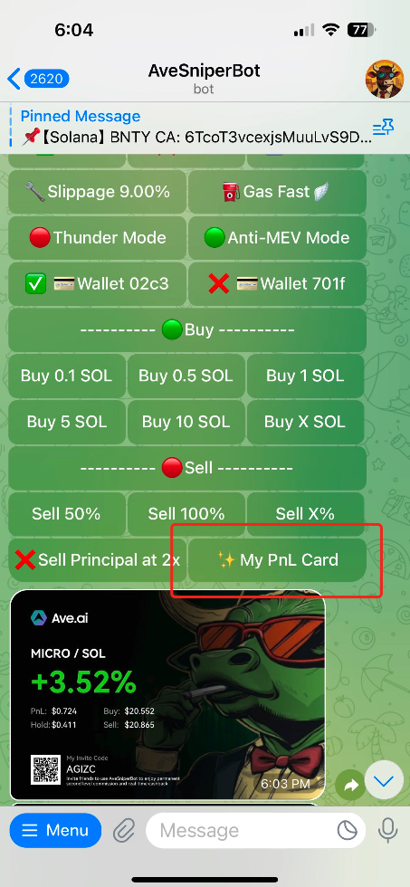 2. 选择您要分享的交易, 点击 **My PnL Card**