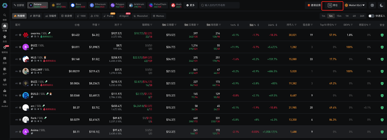 1. 点击Ave.ai左侧边栏 “资产”，进入钱包专属资产面板