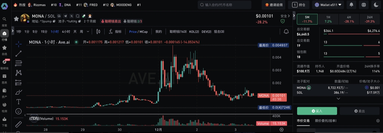 $Mona – Token theo chủ đề nghệ thuật: Lấy cảm hứng từ bức tranh nổi tiếng Mona Lisa (ước tính trị giá 860 triệu USD), $Mona đã tận dụng câu chuyện về "Art Meme" để tạo sự chú ý. Khi những KOL nổi tiếng như @dylanmints, @JoshxKang, @Bullrun_Gravano, @SpiderCrypto0x, và @Crypto_1noX đồng loạt quảng bá token này, sự cường điệu trên thị trường đã gia tăng đáng kể.