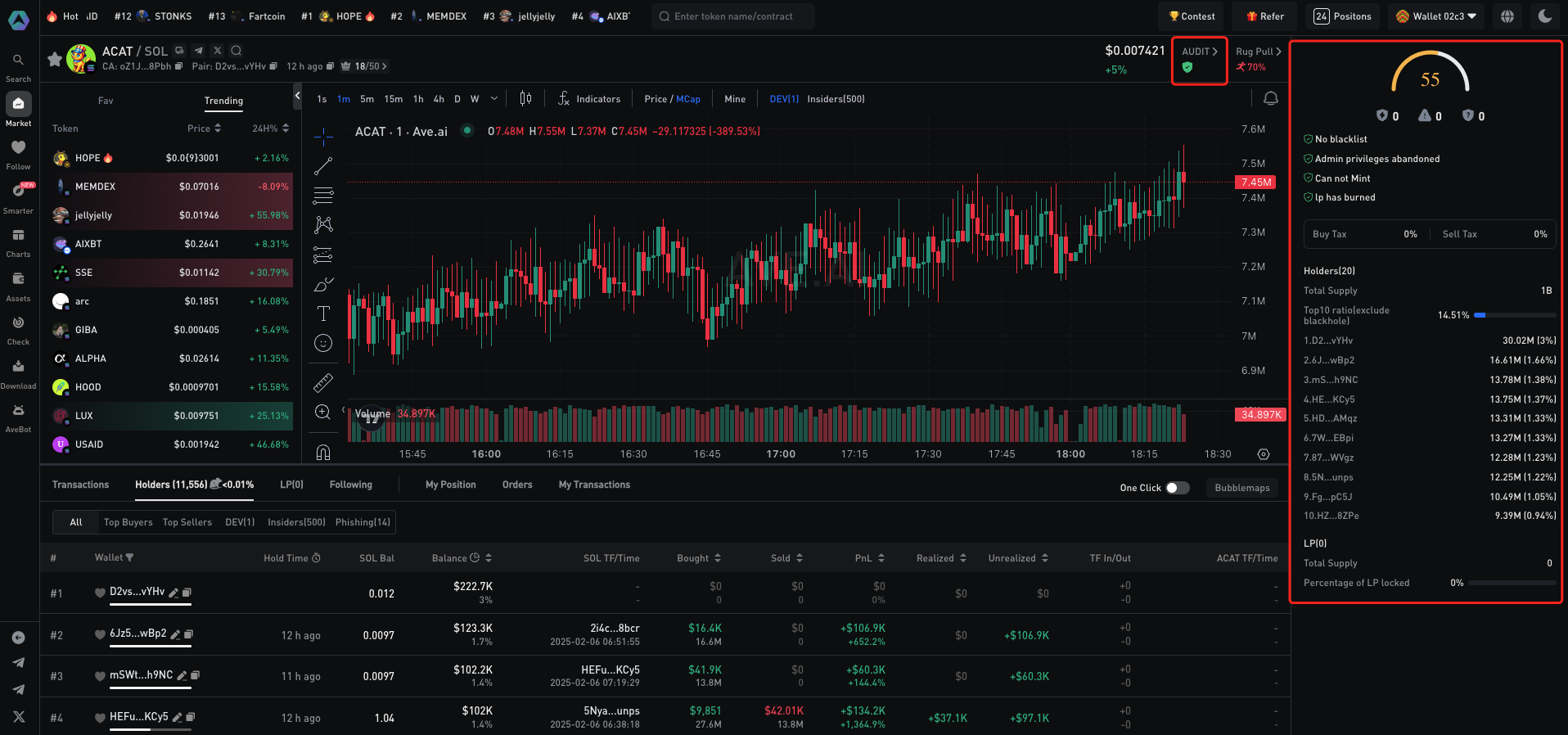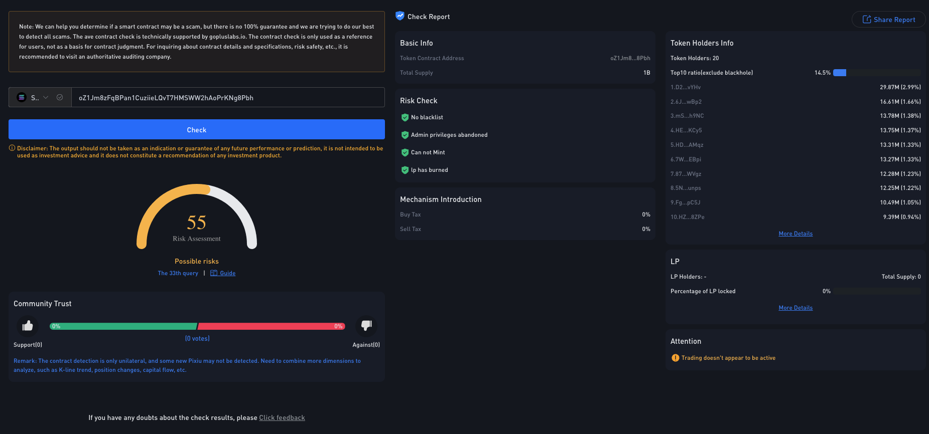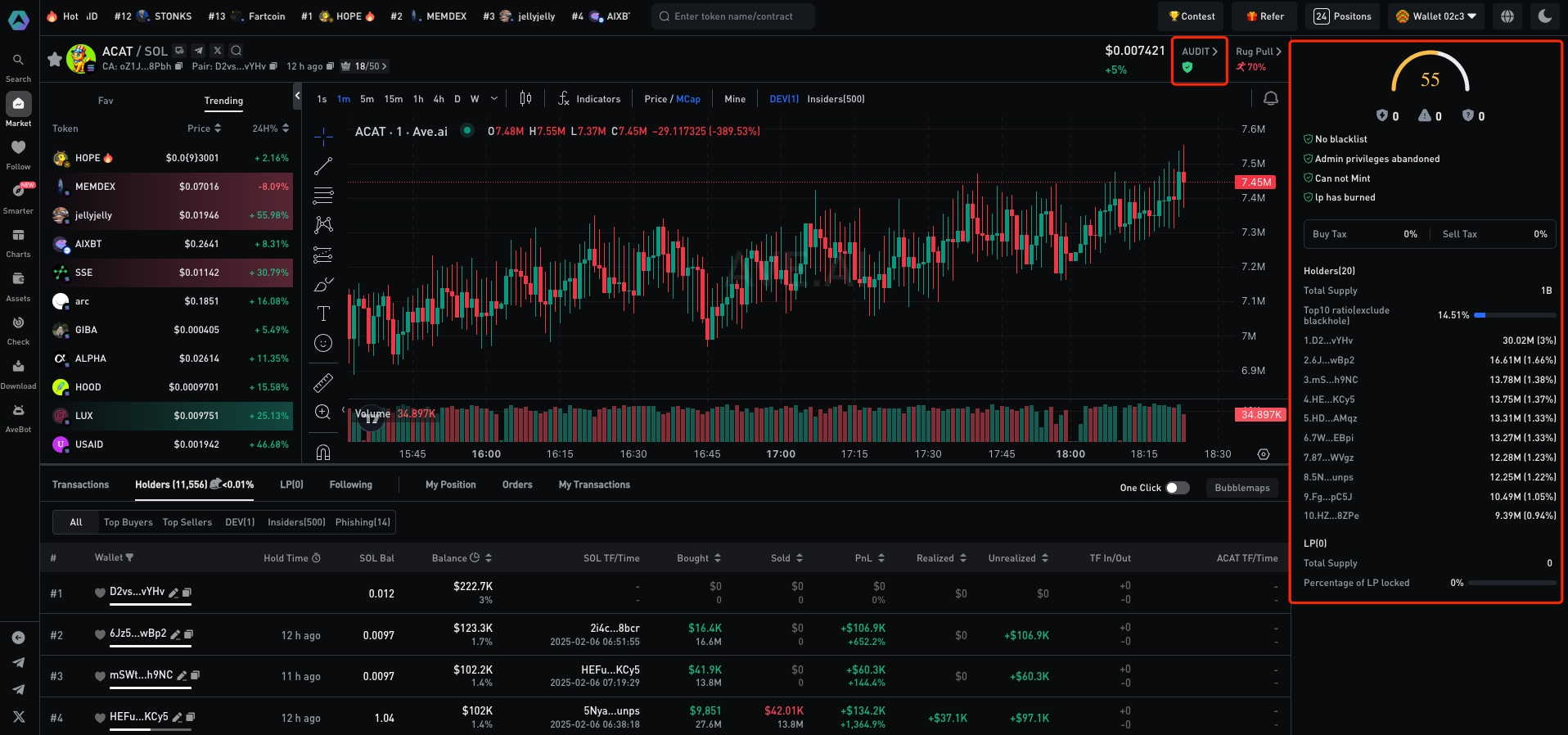 Khóa/Đốt Thanh Khoản: Kiểm tra xem thanh khoản có bị khóa hoặc bị đốt hay không, nhằm giảm thiểu rủi ro bị rút thanh khoản (rug pull).