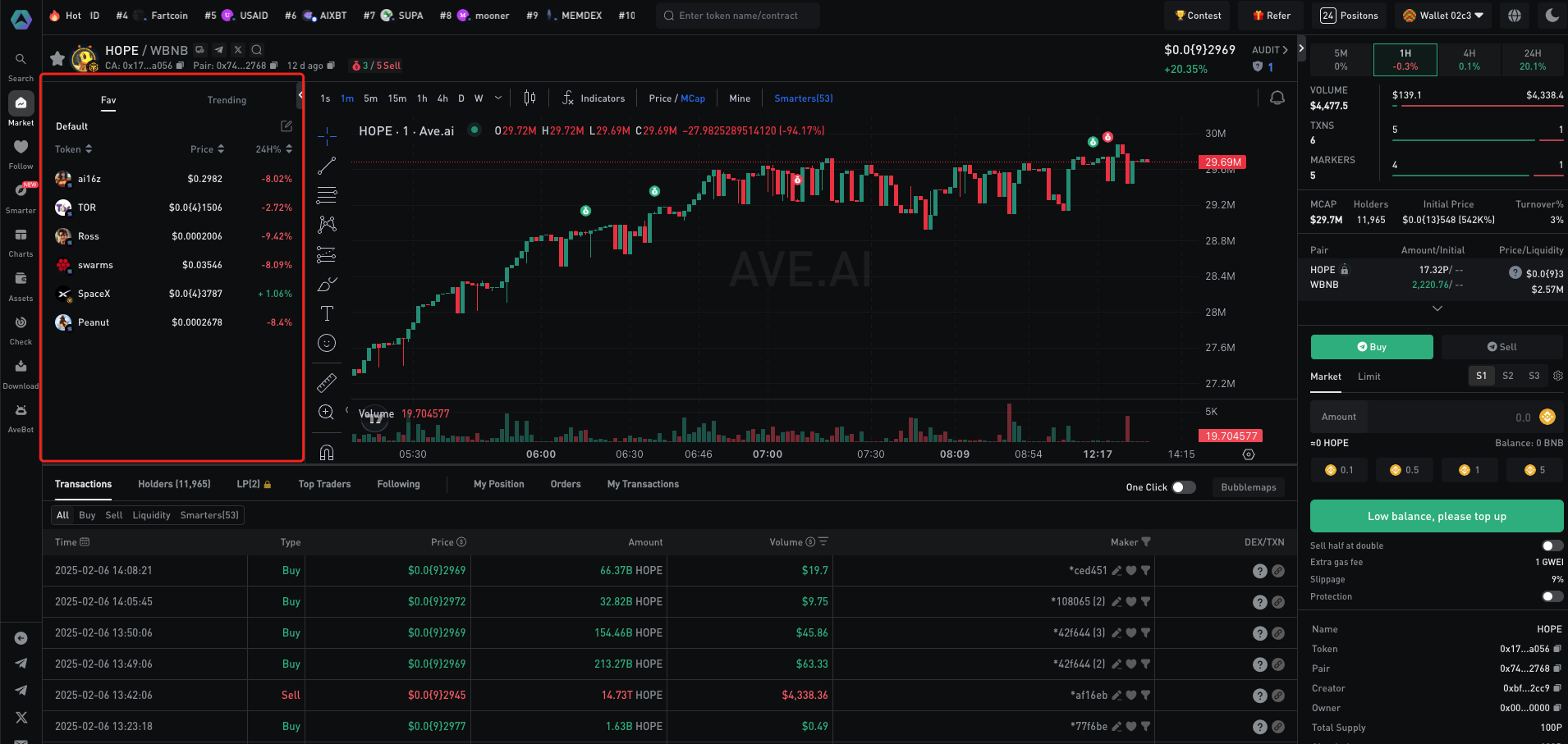 Bạn có thể xem danh sách theo dõi trên trang **Follow** trong thanh bên trên trang chủ Ave.ai. Ngoài ra, để giúp bạn theo dõi các token yêu thích khi giao dịch, Ave.ai cung cấp chế độ xem danh sách tích hợp trên trang thông tin chi tiết của token.