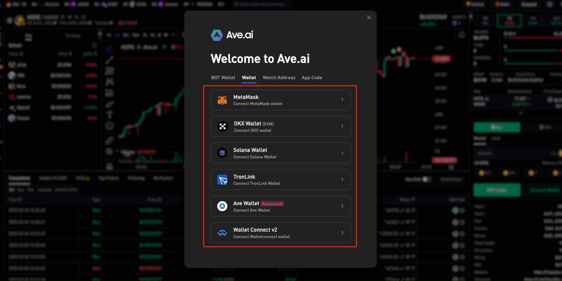 If you already use an on-chain wallet, you can bind it directly. Currently, Ave.ai supports: