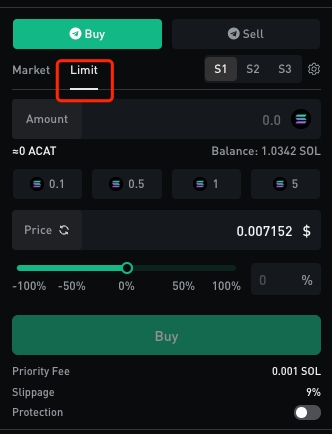 - Thiết Lập Thông Số Lệnh: Sử dụng thanh trượt để đặt giá mục tiêu của token hoặc vốn hóa thị trường mà bạn muốn mua/bán.