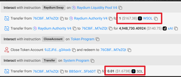 Ví dụ: Với một giao dịch 1 SOL, phí Ave.ai là 0.01 SOL (Lưu ý: WSOL là token giao dịch trên chuỗi Solana, và 1 WSOL = 1 SOL.).